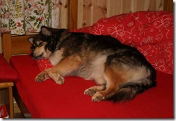 Herlige bilder Tina. Dixie så litt fortapt ut der hun lå foran døra og ventet med selen på:o)